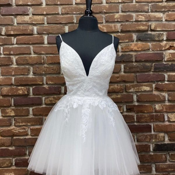 Unique v neck tulle lace long prom dress, lace wedding dress