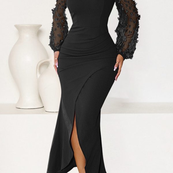 Sheer Mesh Bishop Cocktail Party Dress