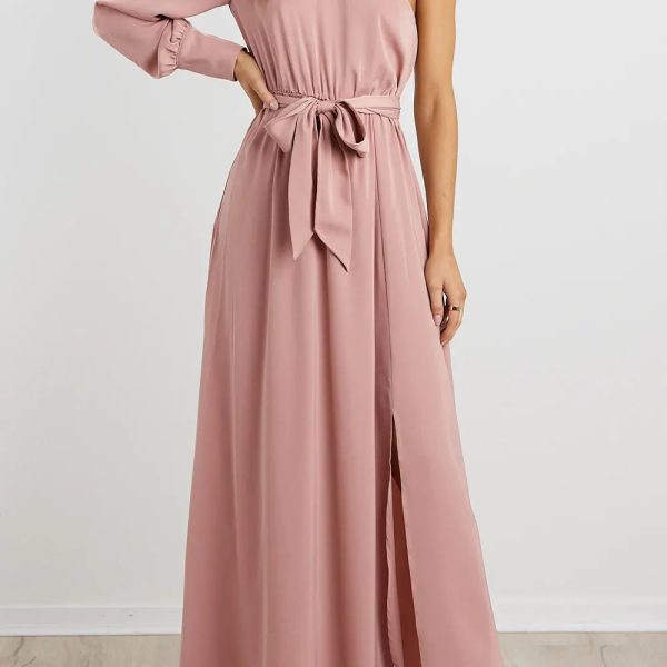 One Shoulder Party Maxi Dress with Belt