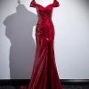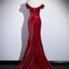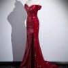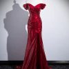 Dark Red Sequins Mermaid Sweetheart Prom Dress, Dark Red Evening Dress