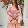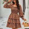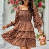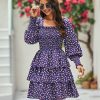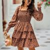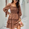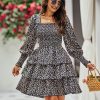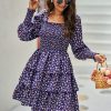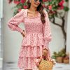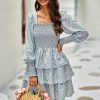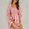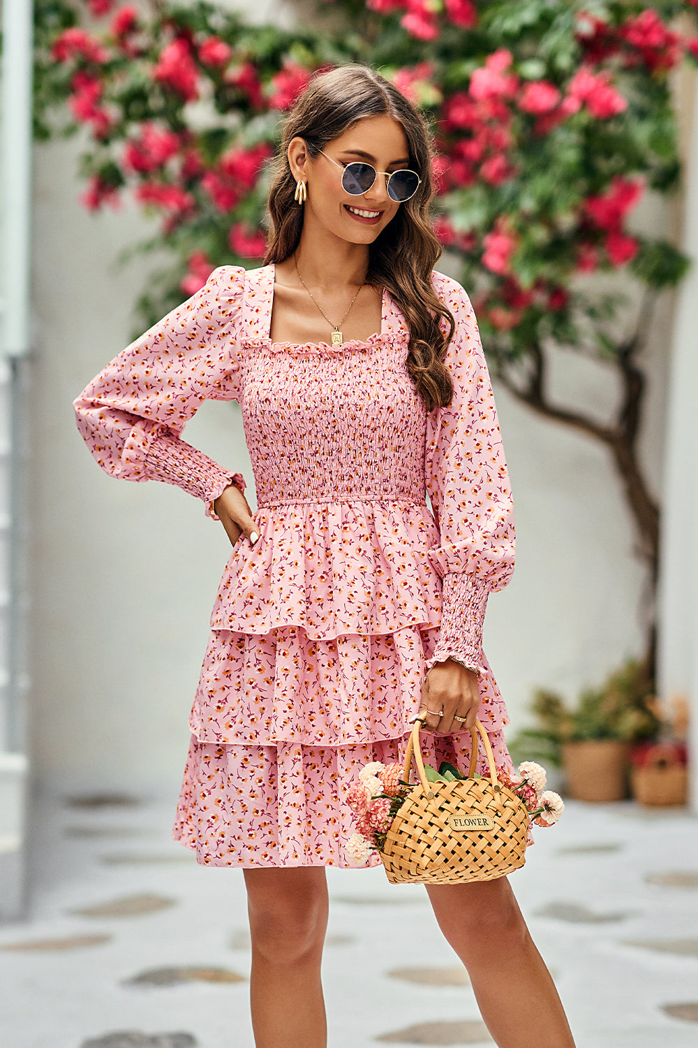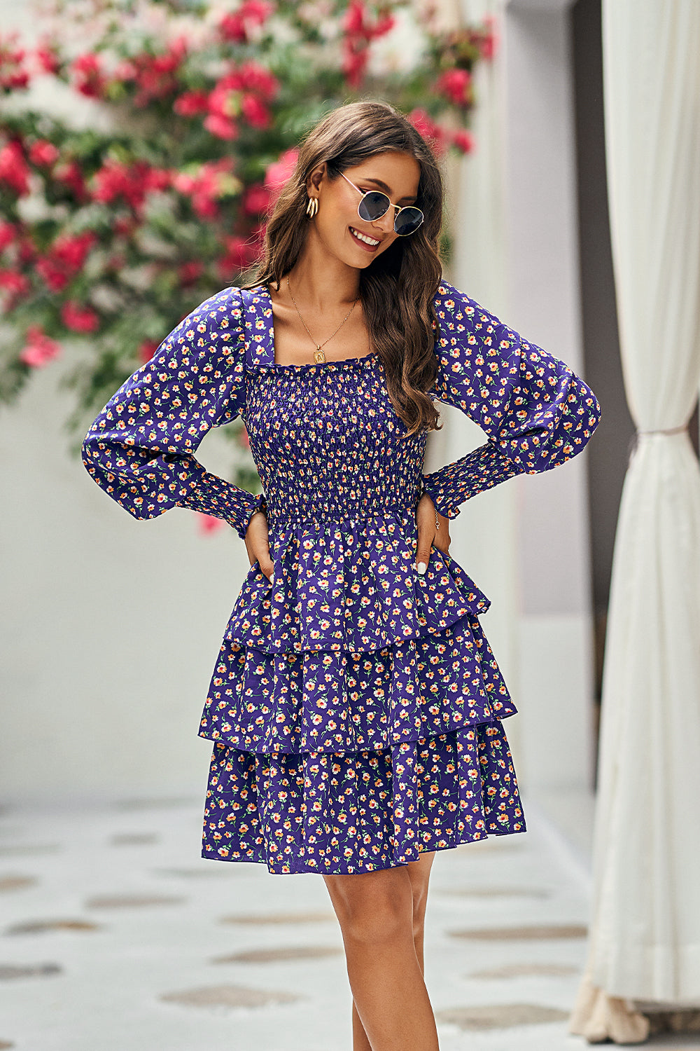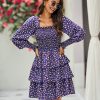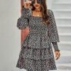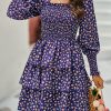 Square Neck Puff Sleeve Flroal Cute Tiered Flowy Dress Mini