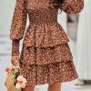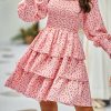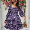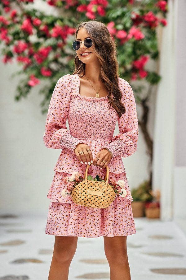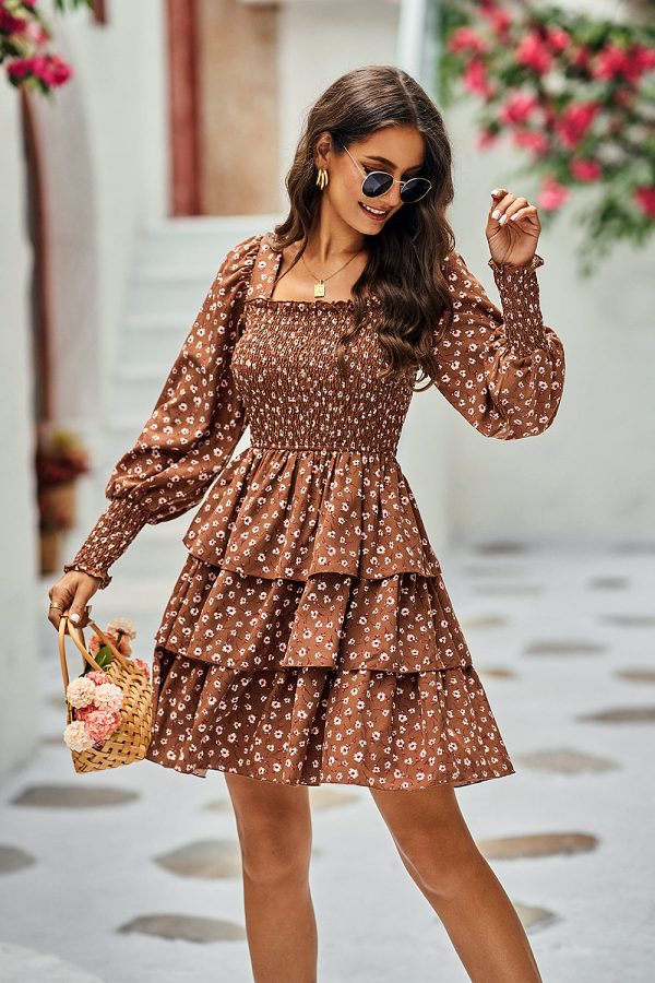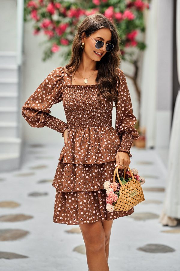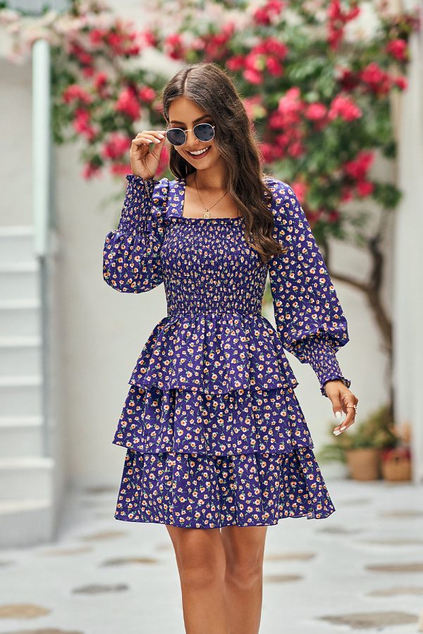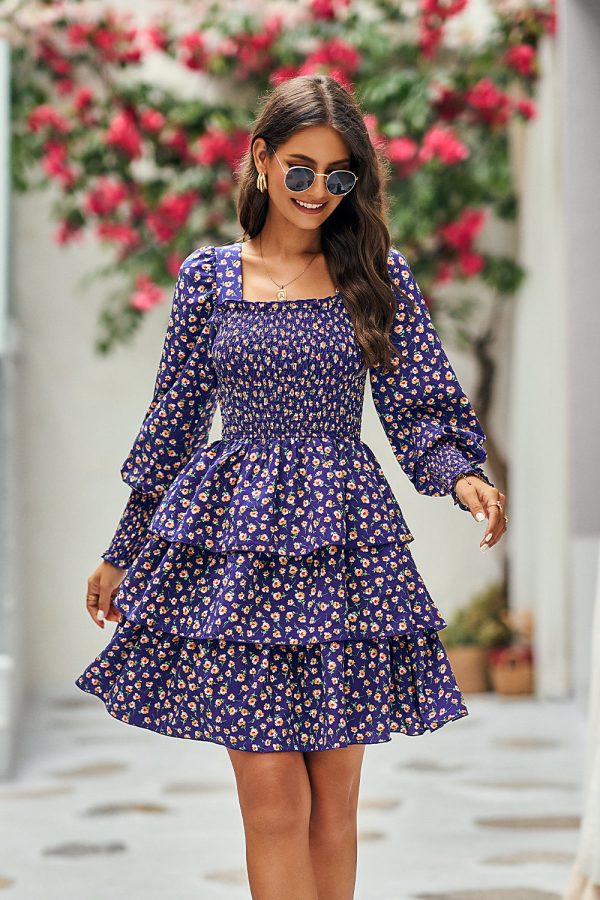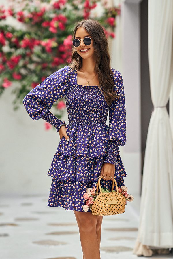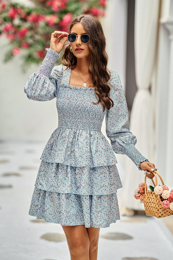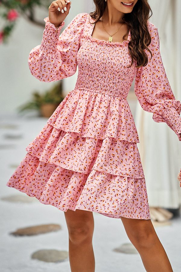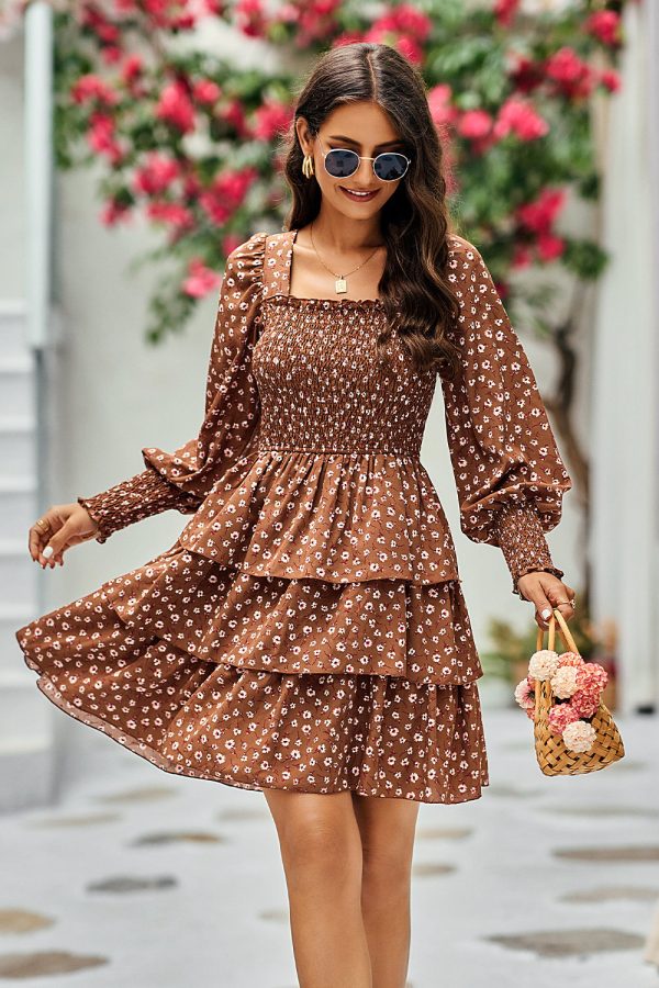 Square Neck Puff Sleeve Flroal Cute Tiered Flowy Dress Mini quantity