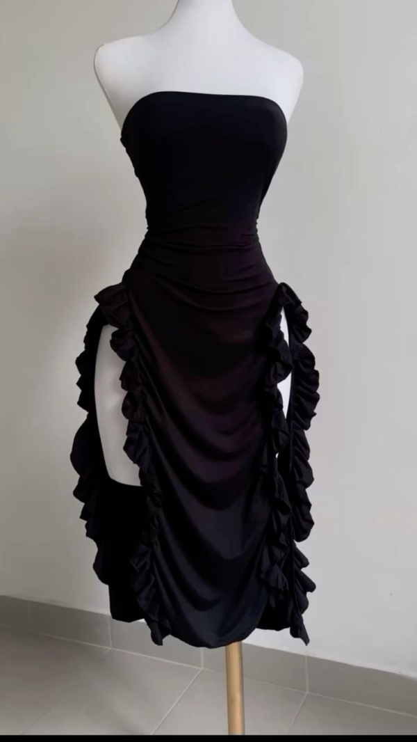 Strapless Midi Length Ruffle Prom Dress Sexy Evening Dress