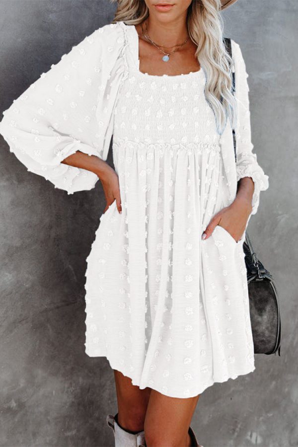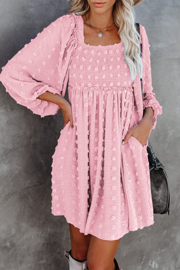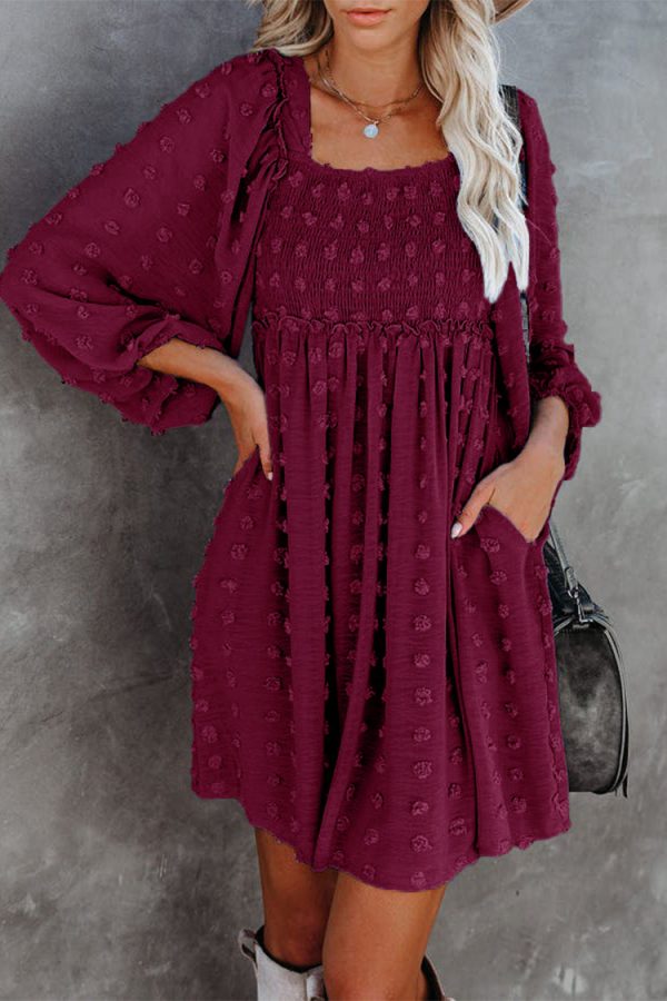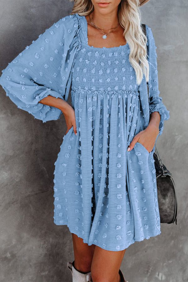 Swiss Dot Flowy Babydoll Ruffle Party Mini Dress